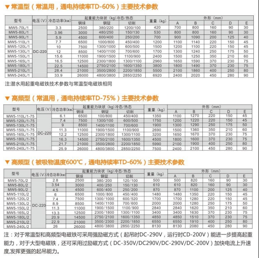 適用于搬運(yùn)鑄鐵錠、鋼球及各種廢鋼。