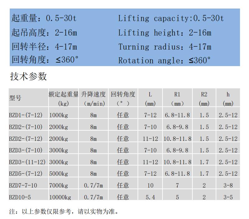 重型旋臂起重機是定柱式旋臂起重機的延伸產品,該機采用了回轉支承與變截面臂結構,起重高達2-16米,回轉半徑達4-17米。在操作方式上, 用戶可選擇手電門操作或無線遙控。本機適用于冶金, 鐵路、碼頭及機械制造等行業(yè)的物料吊運作業(yè)。許多場合下可替代橋式起重機和龍門吊作業(yè),投資少、效益高,該產品投放市場后頗得用戶好評。